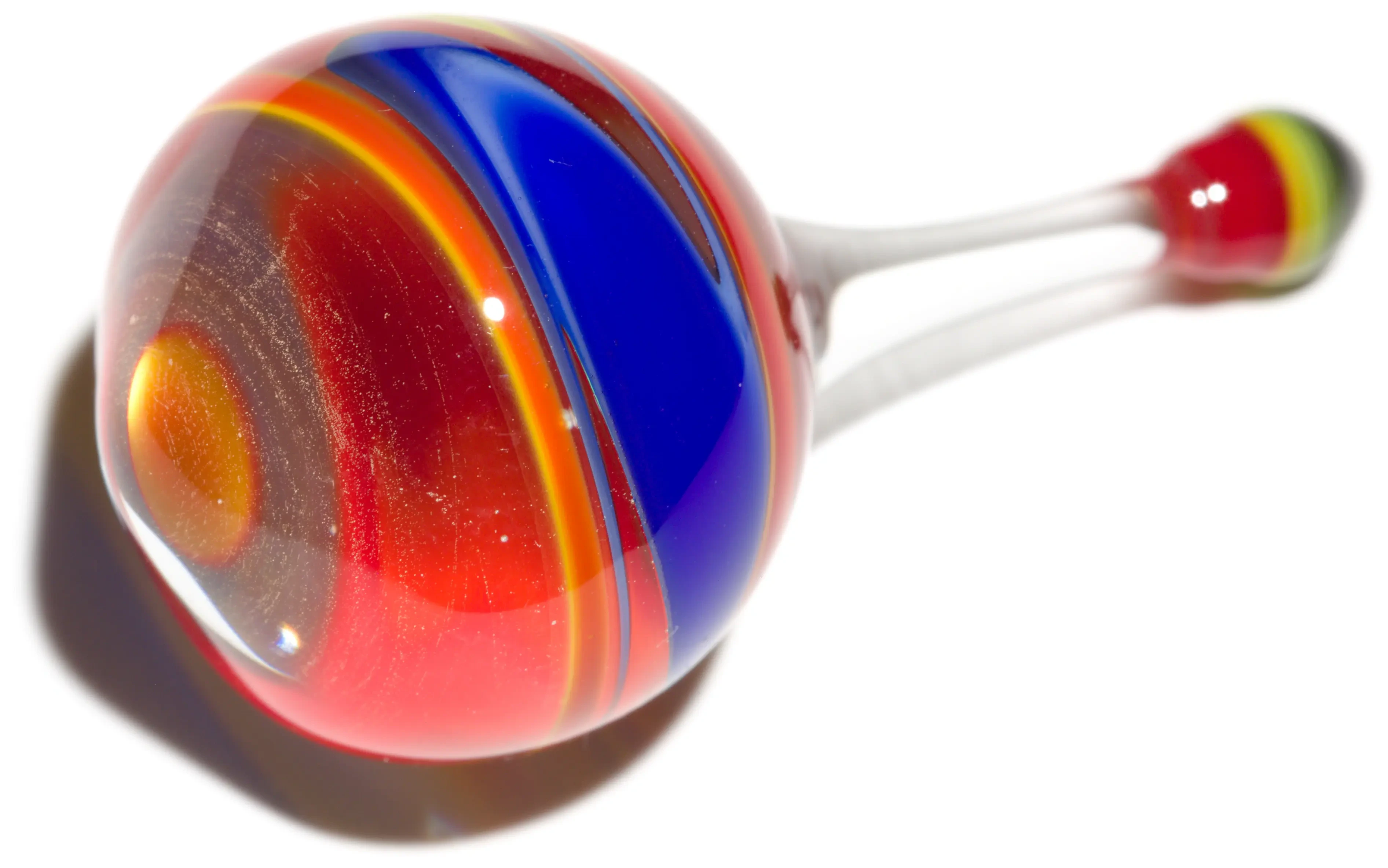 Handmade marbles, jewelry, and functional spinning tops.